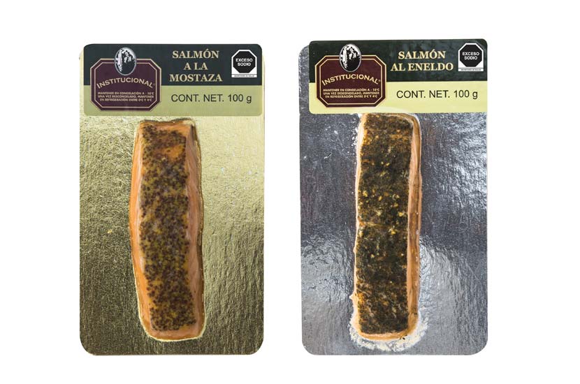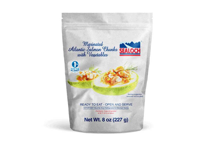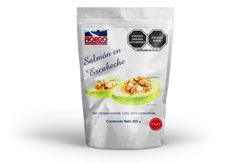 Cubos de salmón atlántico acompañados con una salsa escabeche, listo para su consumo